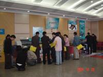 總體感覺邯鄲廣告市場比較成熟,展會(huì)前我們拜訪了邯鄲幾個(gè)有名的噴繪公司如晨光廣告、勝吉廣告公司和花之雨等。通過和他們交流,他們普遍認(rèn)為噴繪價(jià)格價(jià)格比較低,但是還不至于到通過價(jià)格來拼客戶的地步,同時(shí)認(rèn)為機(jī)器的選擇是很重要的。他們憑借著MIMAKI噴繪機(jī)的良好性能和自己的智慧能力一直服務(wù)于很多有名的客戶如中國移動(dòng)等。這些客戶談及MIMAKI都贊不絕口。和晨光廣告公司的蔡總交談了解到,他們先前買過別人的一臺(tái)第四代的B品牌微壓電寫真機(jī),剛開始幾個(gè)月使用還可以,后來就出現(xiàn)很多問題,后來購買了我們一臺(tái)MIMAKI,同時(shí)表示如果這個(gè)機(jī)器賣出去會(huì)再買一臺(tái)MIMAKI,因?yàn)樗麄冇X得MIMAKI 噴繪機(jī)性能比較穩(wěn)定,機(jī)器比較專業(yè)。