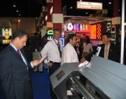 年的努力,已經(jīng)在海外取得良好的業(yè)績(jī)和發(fā)展勢(shì)頭。為了更好的服務(wù)于國(guó)內(nèi)廣大噴繪機(jī)用戶和促進(jìn)海外市場(chǎng)的銷售,運(yùn)源數(shù)碼決定在國(guó)內(nèi)和國(guó)外共同推廣SEDNA(賽得娜)品牌的戶外噴繪機(jī)。 現(xiàn)在先期在國(guó)內(nèi)推廣的XAAR 128噴頭機(jī)器主要采用128噴頭。XAAR-XJ128噴頭完全符合客戶低材料成本的需要,隨著XAAR128噴頭技術(shù)的加強(qiáng),采用128噴頭技術(shù)的噴繪機(jī)已經(jīng)基本適合戶外廣告市場(chǎng)對(duì)噴繪質(zhì)量的要求。由于采用其噴頭的機(jī)器成本低,性能穩(wěn)定,XAAR128噴頭的機(jī)器已經(jīng)得到廣大客戶和生產(chǎn)廠家的一致認(rèn)可。 | ![]() SEDNA噴繪機(jī)參加2005年2月迪拜展會(huì) |