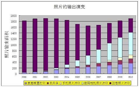隨著數(shù)碼相機(jī)的普及,盡管照片的拍攝量每年都在成倍增加,但是照片的輸出量進(jìn)十年來(lái)一直徘徊不前,電腦、數(shù)碼相框、手機(jī)、Ipad等的不斷普及,使人們對(duì)于照片印出的需求銳減,但照片輸出絕對(duì)量并沒(méi)有明顯減少,畢竟,實(shí)物照片是液晶屏幕不可完全取代的。