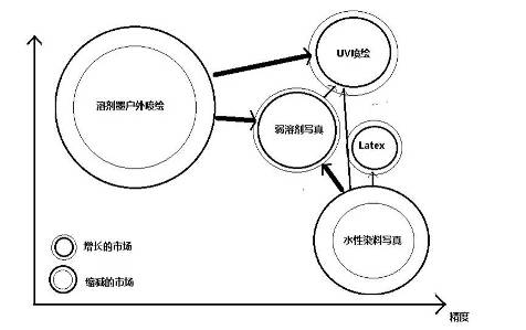 4. 基于UV墨水的平板打印機市場,噴繪沒有涂層的材料,多種應用,以替代傳統(tǒng)絲網(wǎng)印刷為主。