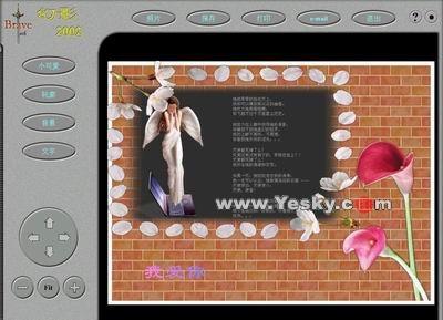 幻影200X系列是由勇敢科技工作室新近推出的一款優(yōu)秀的數(shù)字照片制作工具,使用圖像邊緣柔化技術(shù),可以把一幅或多幅圖像平滑的融合在一起。其可移花接木,讓美女與野獸共存,幻影2003是圖像合成的利器;也可以作為賀卡制作、婚紗攝影的工具。使用它可以為你的照片添加藝術(shù)像框和美麗的小飾品,只需要你輕輕移動(dòng)鼠標(biāo),就可以做出一幅大師級(jí)藝術(shù)效果的新圖像。